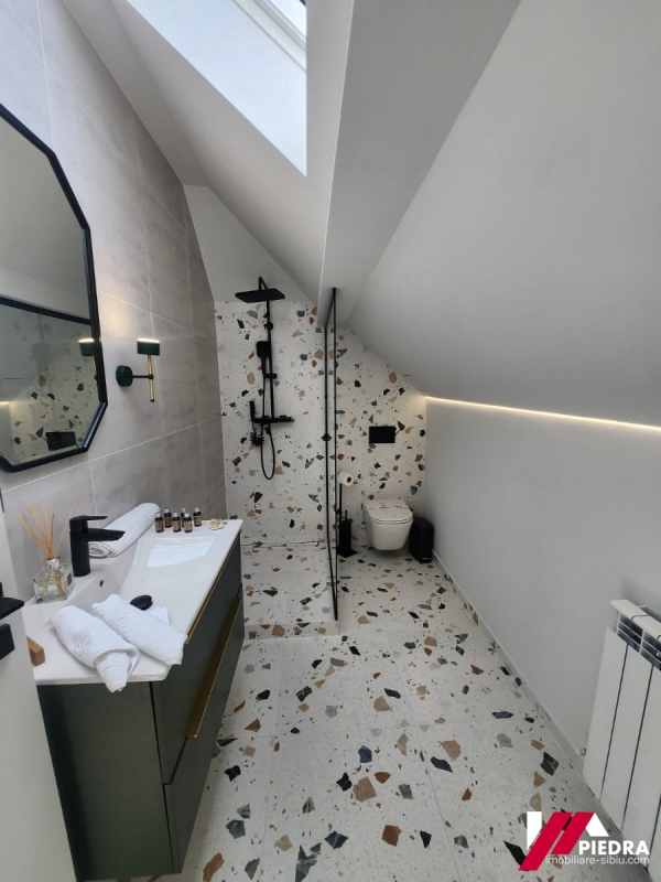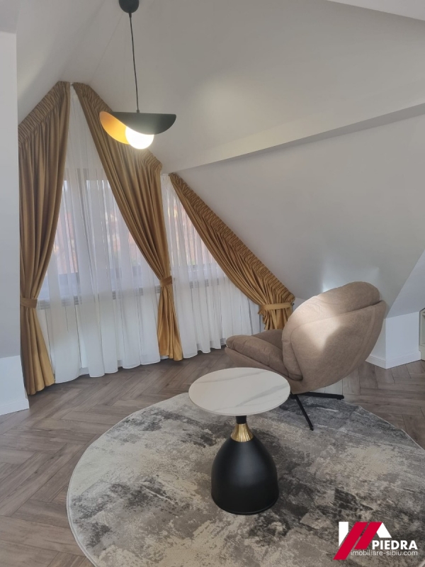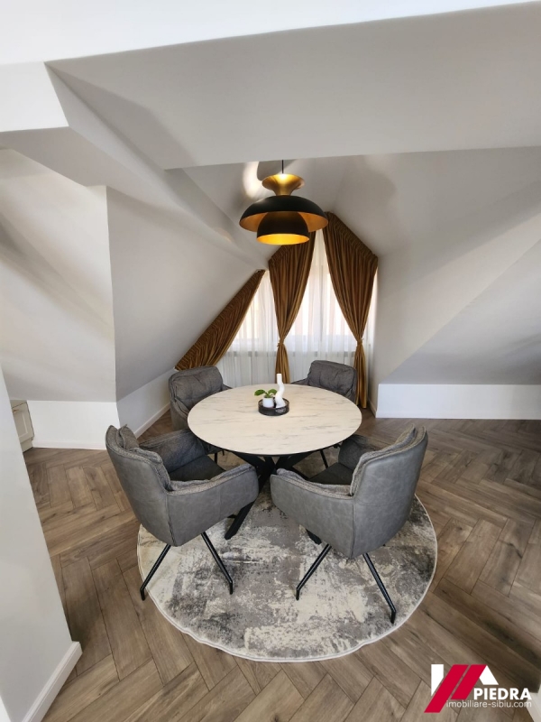 Apartamentul care se ofera pentru incheiere se afla la etajul 2 ( mansarda) unei pensiuni noi.