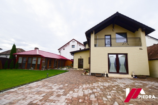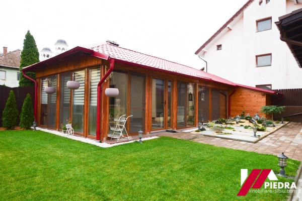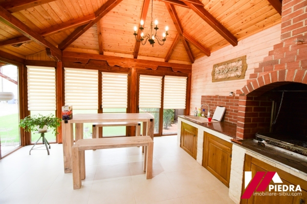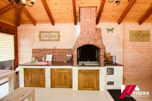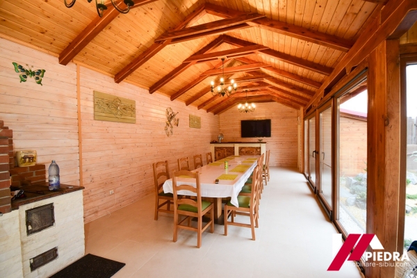 In curte este construit un spatiu de socializare , gen filigorie inchisa in termopane cu semineu pe lemne,bar , baie.