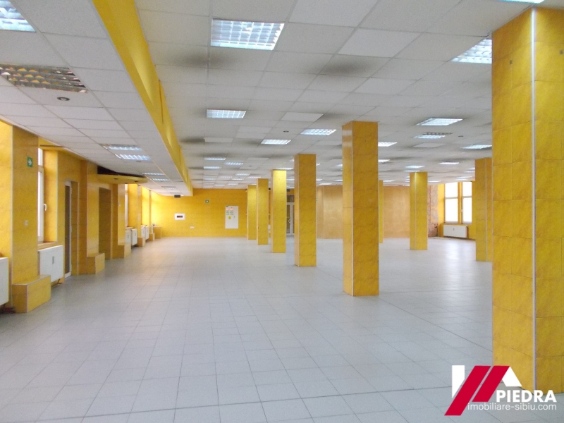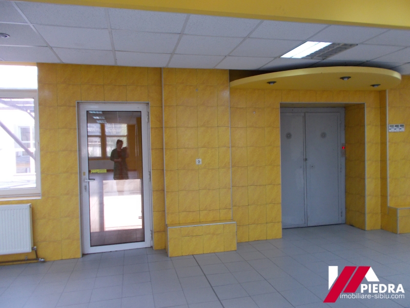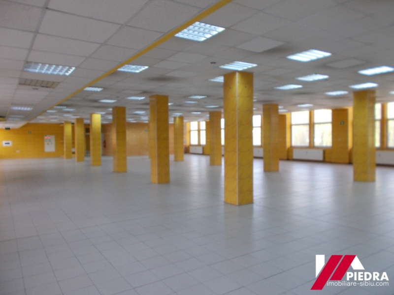 Inchiriez hala pretabila productie, depozit,zona Piata Cibin, cu o suprafata de 809mp mp situata la mezaninul unei cladiri renovate (parter inalt)cu geamurile la strada .Spatiul este format dintr-o incapere mare open space, 2 vestiare, grupuri sanitare , 2 incaperi pretabile birouri sau depozite.Exista si lift pentru marfa si acces cu tirul in curtea interioara.Pret 6Euro/mp . La cerere se pot inchiria si birouri amenajate la standarde inalte cu o suprafata de 200mp , la pretul de 8Euro/mp .Acest spatiu poate avea si destinatie comerciala . Cladirea din care face parte spatiul este securizata , fiind paza permanenta , camere de supraveghere si multe alte facilitati .