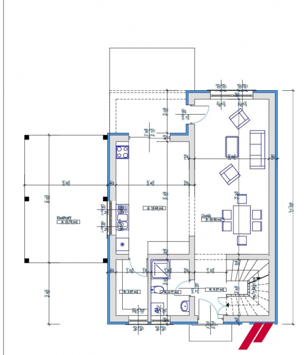 Toate baile au geamuri de aerisire,iar in bucatarie este prevazuta in mijloc o insula pentru gatit. De asemenea vila este prevazuta cu carport. Vila se vinde la stadiu de alb ,avand incalzire centrala Bosh in pardoseala,peretii zugraviti in lavabila alba, instalatiile electrice si sanitare efectuate,sapa de nivelare in camere,termopane ,izolatie exterioara,gard etc .