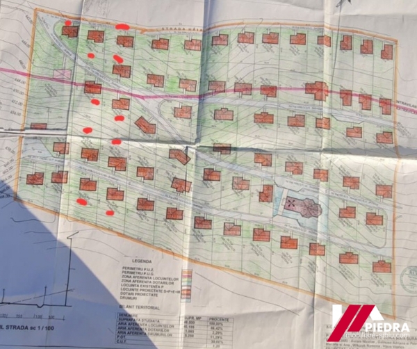Vand diverse parcele de teren intravilan situate in Sura Mare,pe str.Trandafirului, deasupra cartierului Ana. Parcelele au diverse suprafate : 400m,566m,613m,667m,665m,582m,680m,670m cu deschideri cuprinse intre 20.76ml-22ml-24ml. Terenurile au PUZ pentru locuințe individuale sau duplexuri.POT-ul este de 30%, CUT 1,2,Regim de inaltime S+P+E+M. Terenurile au o usoara panta. In fata terenului sunt utilitatile: apa,canal, iar la 50 m se afla gazul si curentul. Pret 100Euro/ mp