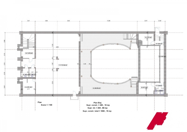 -etajul unde se afla un salon de evenimente , grupurile sanitare si 2 birouri + pod cu rol de depozitare .