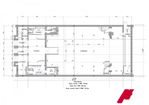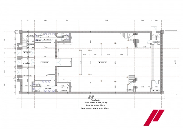 -parter unde se afla sala de evenimente , grupurile sanitare , bucataria si holu de intrare ;