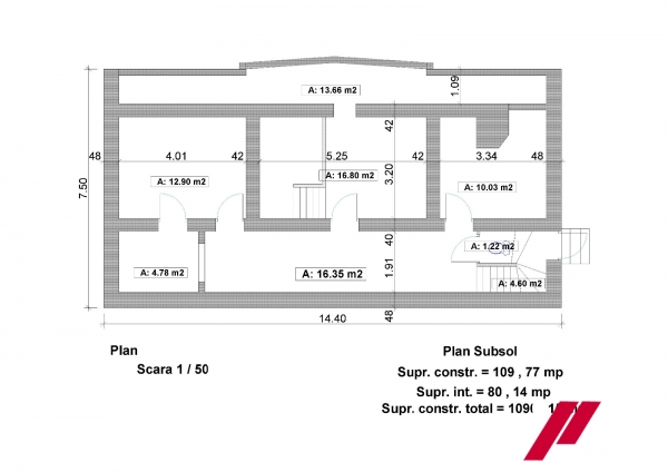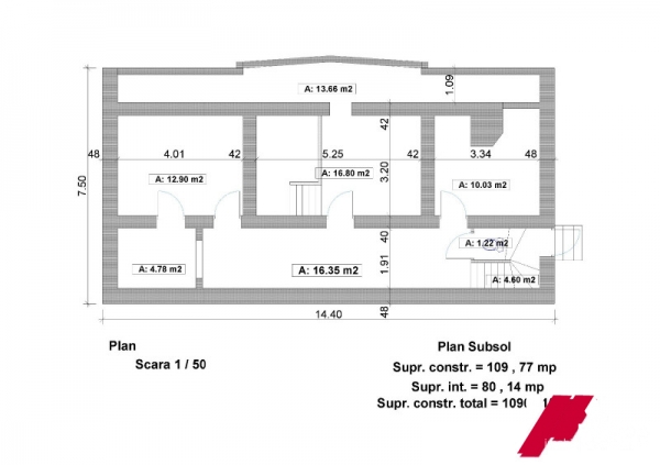 Suprafetele sunt urmatoarele : parter 490mp , etaj 490mp , demisol 109mp .